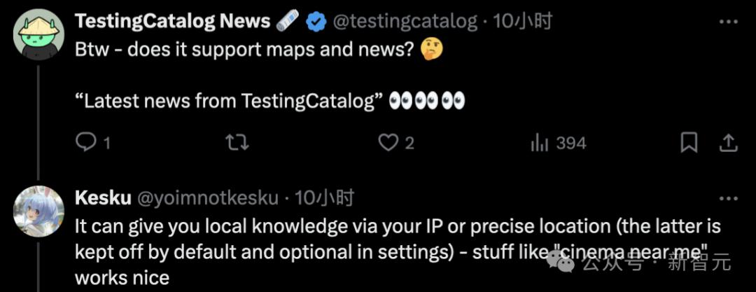 第一位网友问道,「它支持地区和新闻吗,比如来自TestingCatlog的最新新闻」。