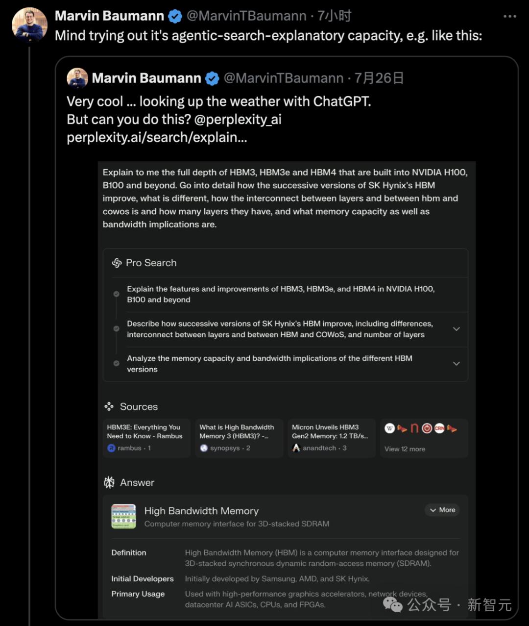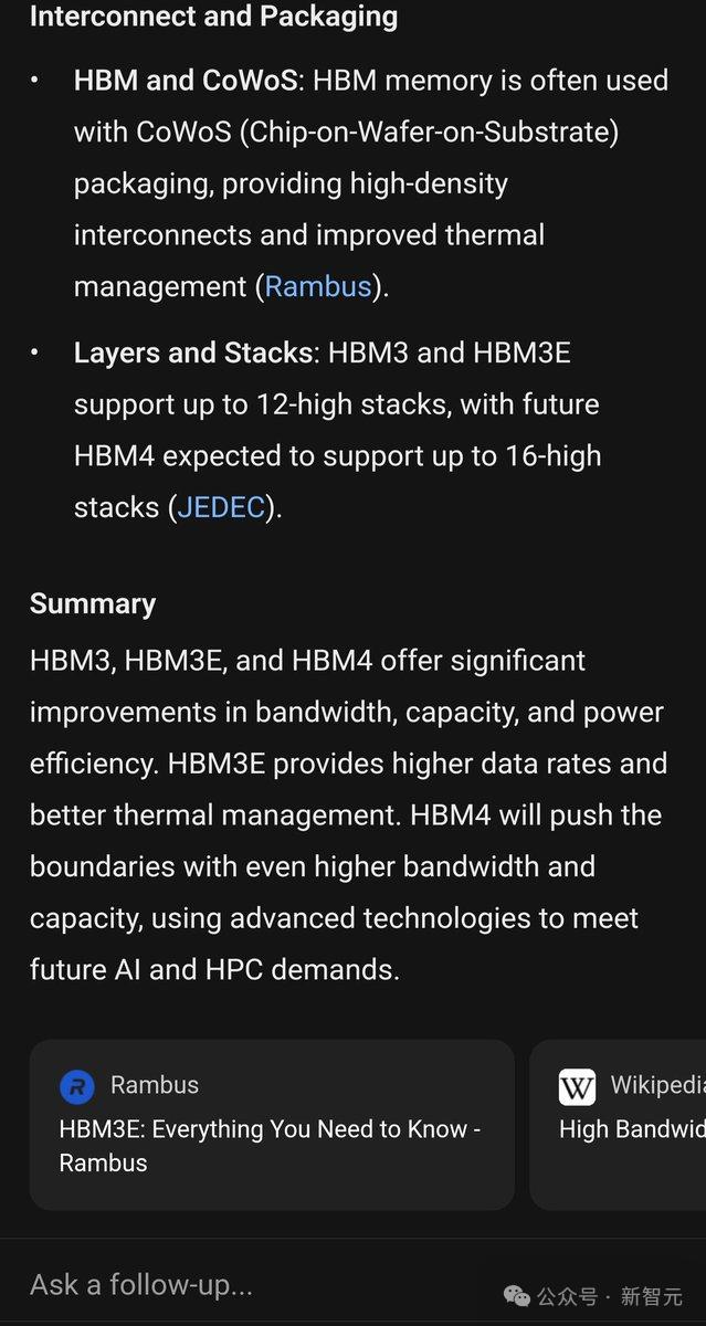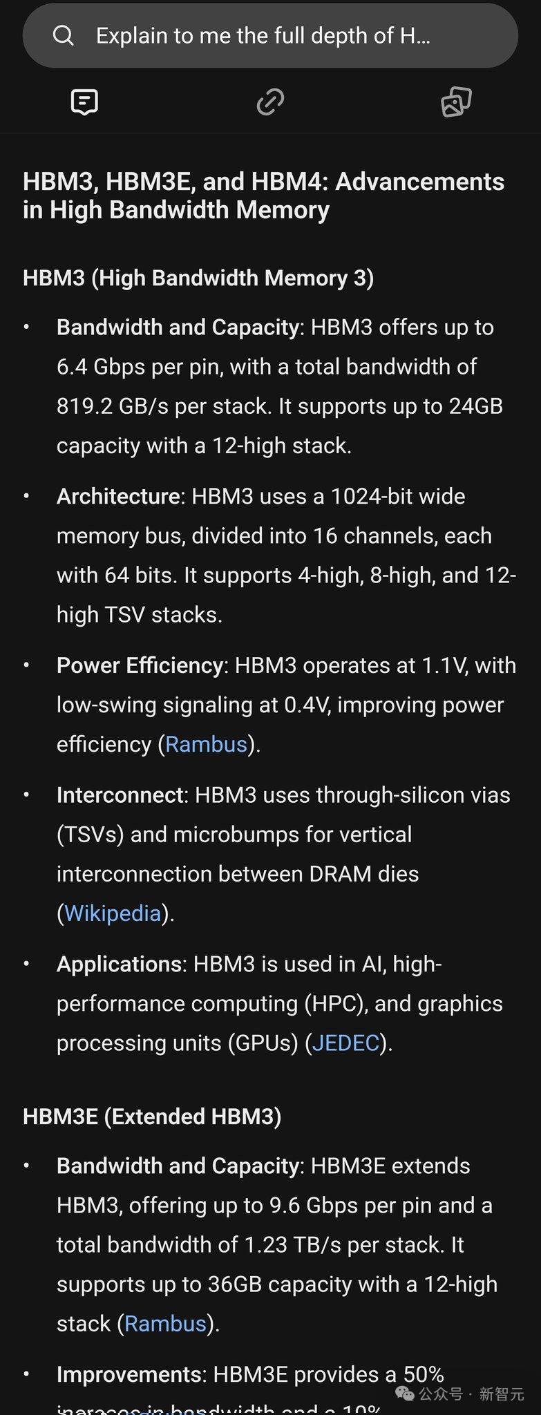 SearchGPT在给出关于高带宽存储器的解释中,蓝色标出的内容,是参考解释。